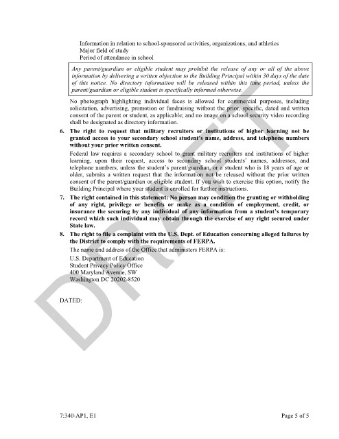 telephone numbers, unless the student’s parent/guardian, or a student who is 18 years of age or