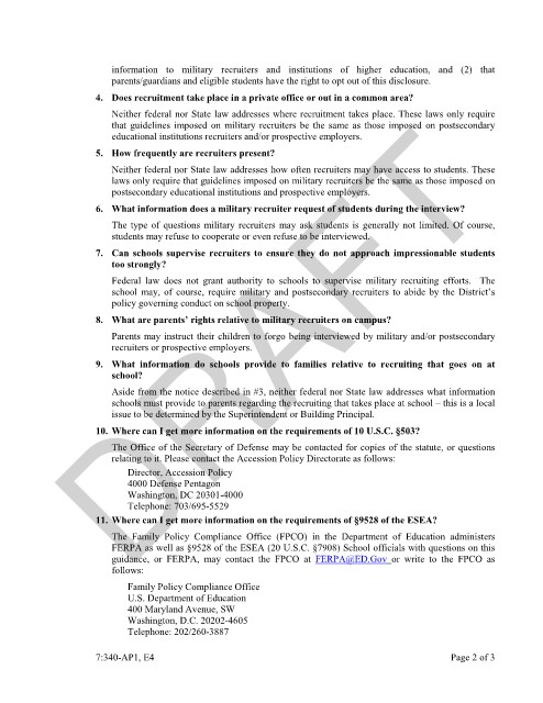schools must provide to parents regarding the recruiting that takes place at school – this is a local