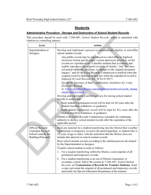 This procedure should be used with 7:340-AP1, School Student Records, which is annotated with