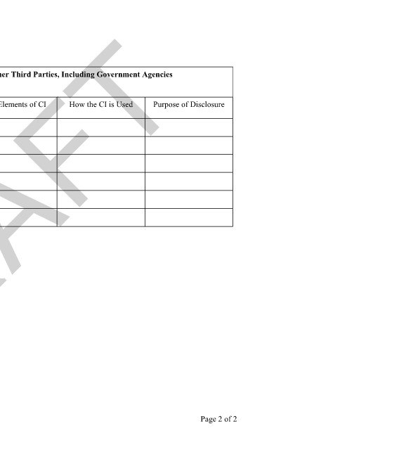 Covered Information (CI) Disclosed to Other Third Parties, Including Government Agencies