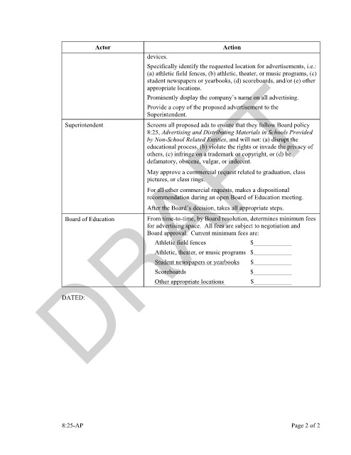 Superintendent Screens all proposed ads to ensure that they follow Board policy