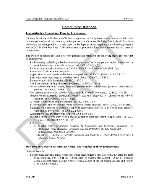 Rich Township High School District 227 8:95-AP