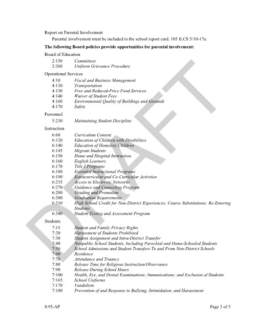 The following Board policies provide opportunities for parental involvement: