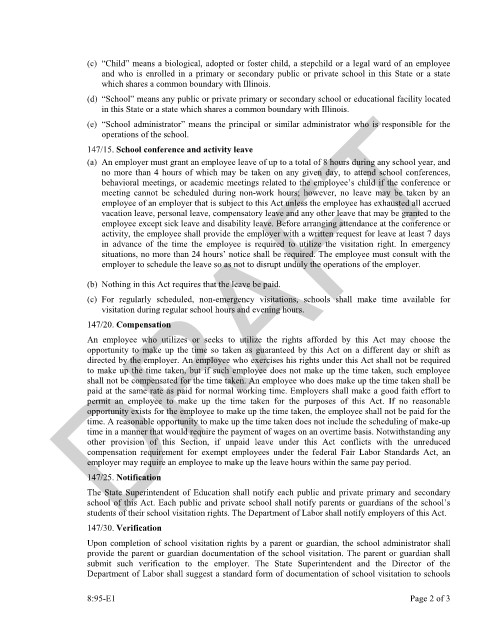 students of their school visitation rights. The Department of Labor shall notify employers of this Act.
