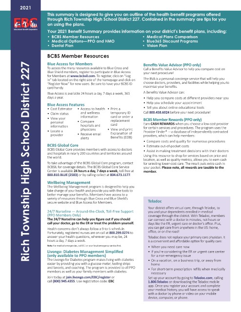 Your 2021 Benefit Summary provides information on your district’s benefit plans, including: