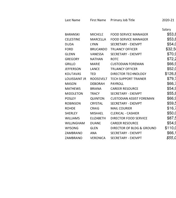 WYSONG GLEN DIRECTOR OF BLDG & GROUND $110,000.00 $0.00 $113,300.00 DISTRICT 12 260
