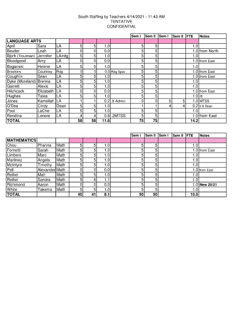South Staffing by Teachers 4/14/2021 - 11:43 AM