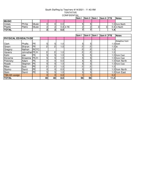 South Staffing by Teachers 4/14/2021 - 11:43 AM