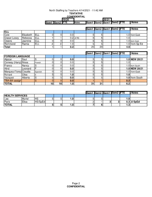 North Staffing by Teachers 4/14/2021 - 11:42 AM