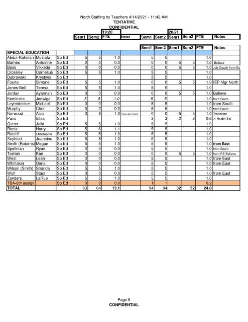 North Staffing by Teachers 4/14/2021 - 11:42 AM
