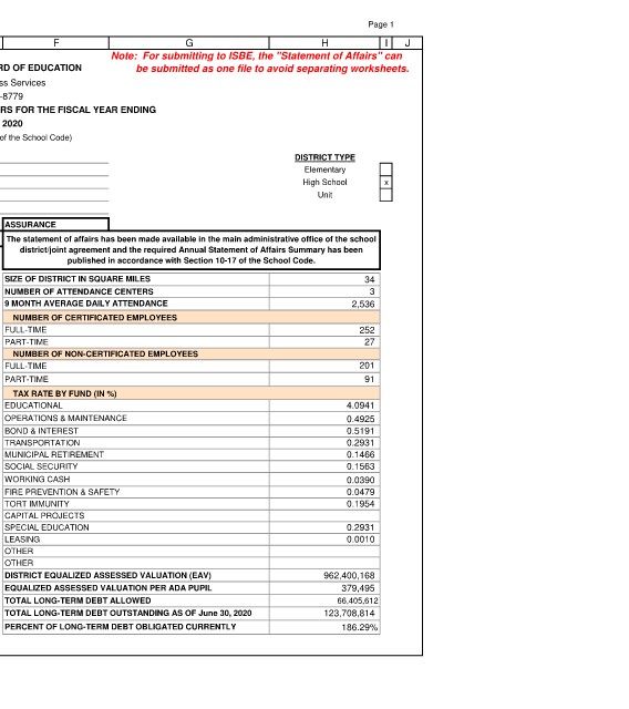 1 This page must be sent to ISBE Note: For submitting to ISBE, the "Statement of Affairs" can