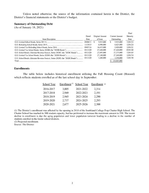 Unless noted otherwise, the source of the information contained herein is the District, the