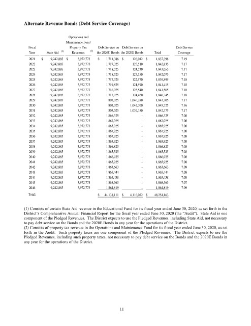 to pay debt service on the Bonds and the 2020E Bonds in any year for the operations of the District.