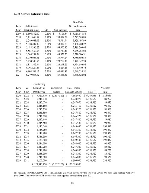 year 2009. The applicable CPI increase has been applied through levy year 2021.