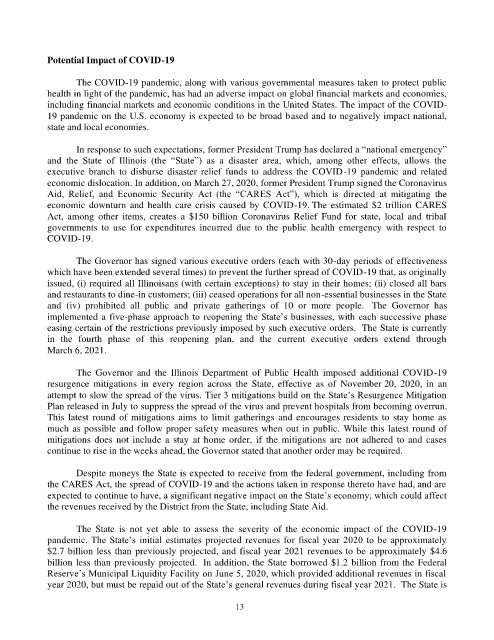 pandemic. The State’s initial estimates projected revenues for fiscal year 2020 to be approximately