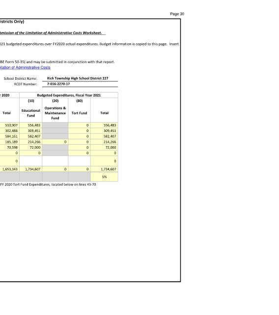 ESTIMATED LIMITATION OF ADMINISTRATIVE COSTS WORKSHEET School District Name: Rich Township High School District 227