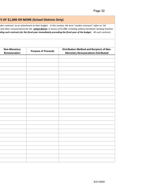 REPORTING OF PUBLIC VENDOR CONTRACTS OF $1,000 OR MORE (School Districts Only)