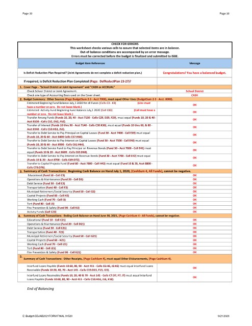 2. Budget Summary: Other Sources (Page BudgetSum 2-3 - Acct 7000), must equal Other Uses (BudgetSum 2-3 - Acct. 8000).