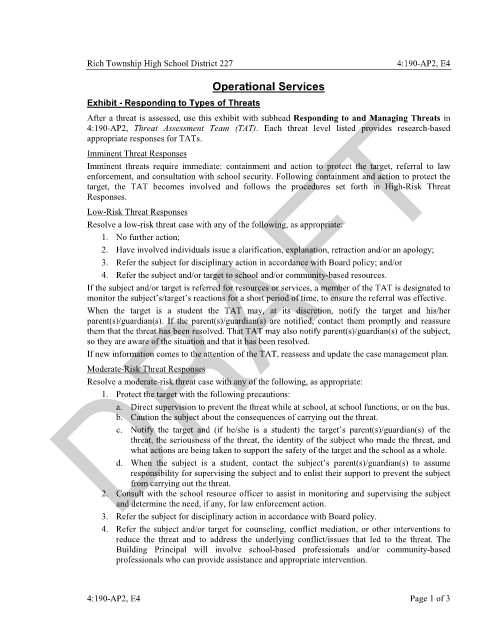 target, the TAT becomes involved and follows the procedures set forth in High-Risk Threat