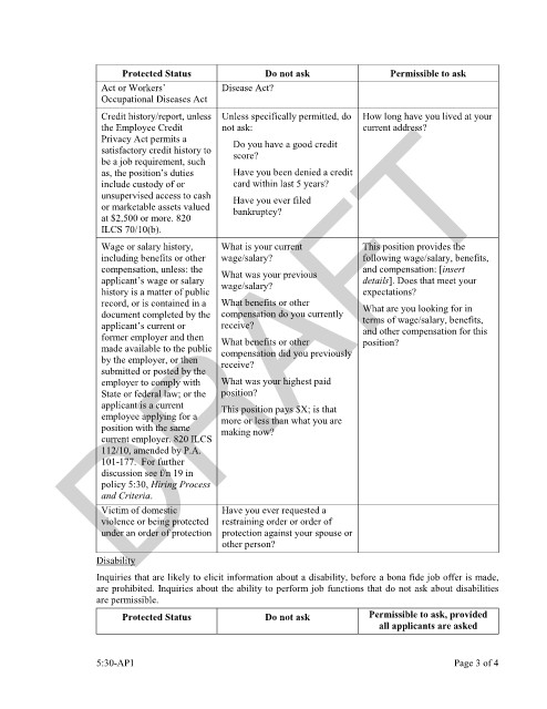 Protected Status Do not ask Permissible to ask