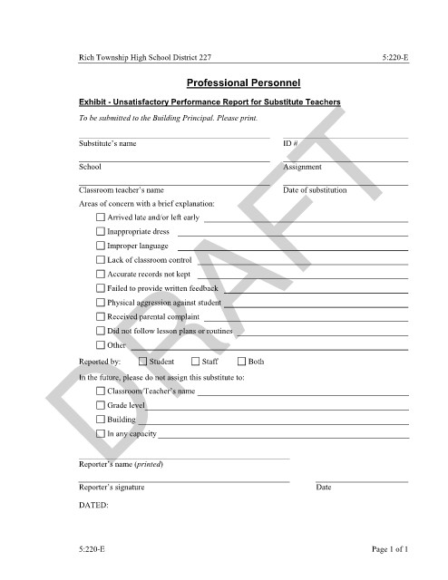 Exhibit - Unsatisfactory Performance Report for Substitute Teachers