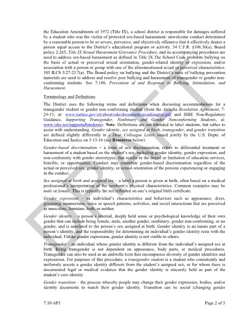 transgender student or gender non-conforming student (from the Arcadia Resolution Agreement, 7-