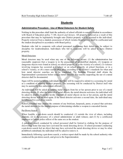 how metal detector searches are to be conducted. The Building Principal shall obtain the