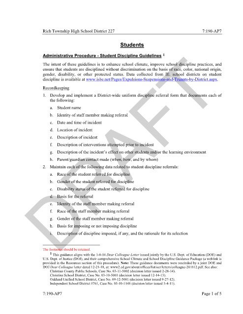 Rich Township High School District 227 7:190-AP7