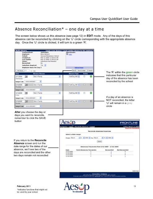 absence can be reconciled by clicking on the ‘U’ circle corresponding with the appropriate absence