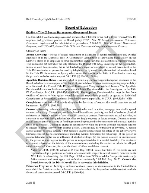Rich Township High School District 227 2:265-E