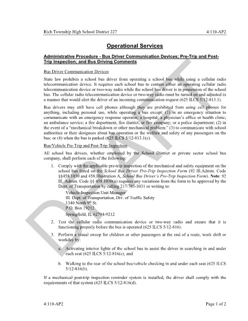 Administrative Procedure - Bus Driver Communication Devices; Pre-Trip and Post-