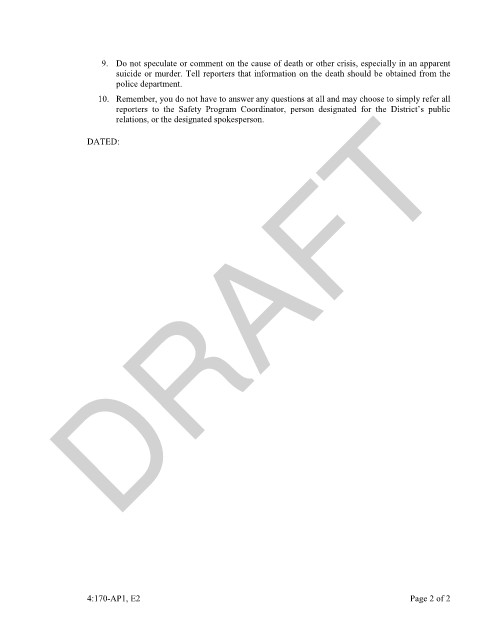 reporters to the Safety Program Coordinator, person designated for the District’s public