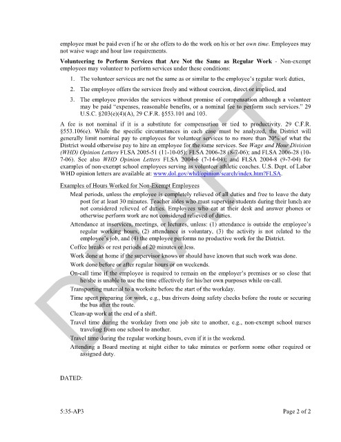 examples of non-exempt school employees serving as volunteer athletic coaches. U.S. Dept. of Labor