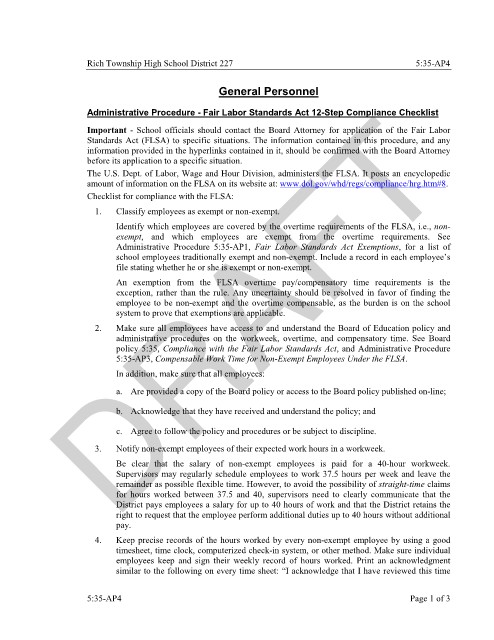 policy 5:35, Compliance with the Fair Labor Standards Act, and Administrative Procedure