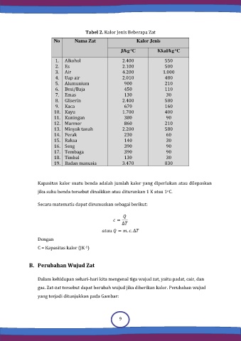 Tabel 2. Kalor Jenis Beberapa Zat
