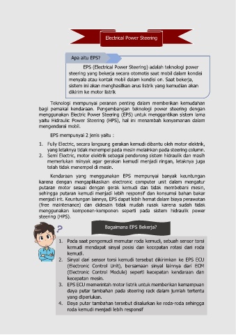Kendaraan  yang  menggunakan  EPS  mempunyai  banyak  keuntungan