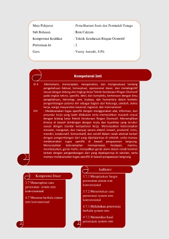 Kompetensi Keahlian          : Teknik Kendaraan Ringan Otomotif