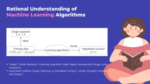 Rational Understanding of Machine Learning Algorithms Target f tidak diketahui. Learning algorithm tidak dapat memperoleh fungsi yang sempurna Asumsikan bahwa fungsi hipotesis g mendekati fungsi f, tetapi mungkin berbeda dari fungsi f.