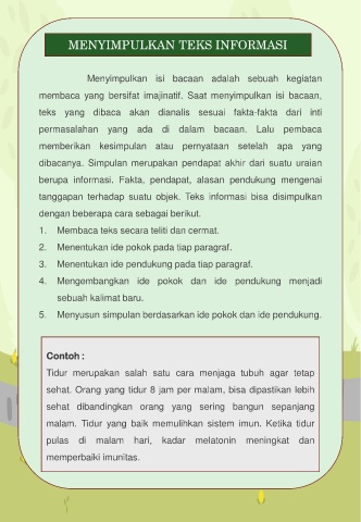 5. Menyusun simpulan berdasarkan ide pokok dan ide pendukung.