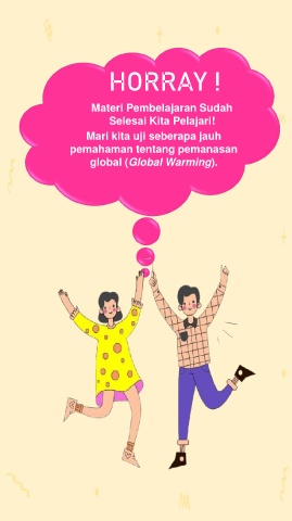 HORRAY ! Materi Pembelajaran Sudah Selesai Kita Pelajari! Mari kita uji seberapa jauh pemahaman tentang pemanasan global (Global Warming).