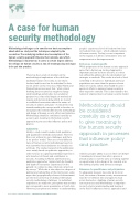 in established conventions about the nature of security, its objects and goals.” A critical first step towards making the concept useful is therefore to incorporate this referent shift into the methodology and design of human security efforts and initiatives. Methodology should be considered carefully as