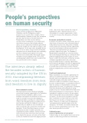 wells – [due to the water scarcity] the crops are beginning to suffer.” Natural resources are a determinant of economic opportunities, which in turn affect many other dimensions of human security.