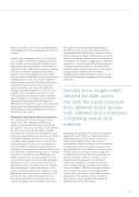 As it democratises security, human security brings with it the challenge of addressing subjective and conlicting security needs and perceptions. Security is no longer solely deined by state actors, but with the input of people from different social groups with different and sometimes competing needs and interests. Multi- stakeholder dialogue processes are necessary