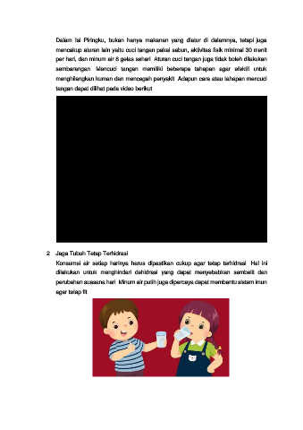 per hari, dan minum air 8 gelas sehari. Aturan cuci tangan juga tidak boleh dilakukan