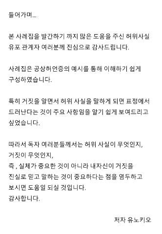따라서 독자 여러분들께서는 허위 사실이 무엇인지,
