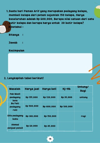 1. Suatu hari Paman Arif yang merupakan pedagang kelapa,