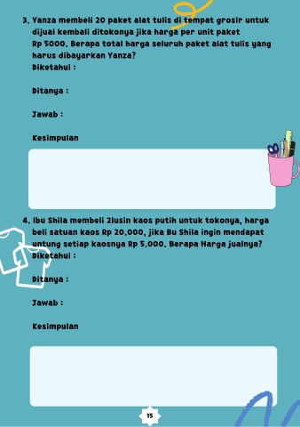 3. Yanza membeli 20 paket alat tulis di tempat grosir untuk