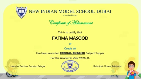 Has been awarded SPECIAL ENGLISH Subject Topper