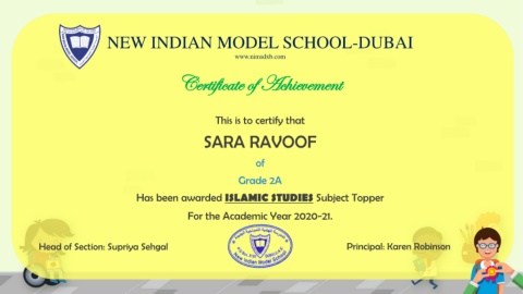 Has been awarded ISLAMIC STUDIES Subject Topper