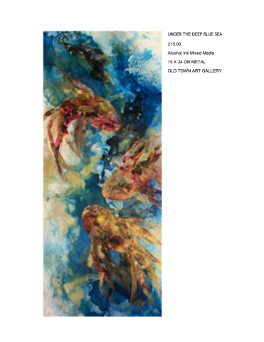 UNDER THE DEEP BLUE SEA 215.00 Alcohol Ink Mixed Media 10 X 24 ON METAL OLD TOWN ART GALLERY